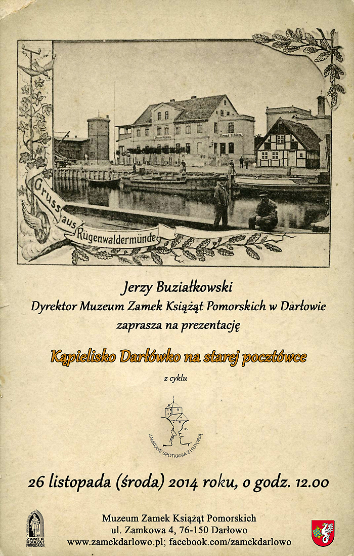 W czerwcu tego roku minęło 200 lat od oficjalnego otworzenia kąpieliska w Darłówku. Stąd kolejne Zamkowe Spotkania z Historią poświęcone będą temu wydarzeniu. Zapraszamy 26 listopada 2014 r. na godz. 12. na przygotowaną przez Jerzego Buziałkowskiego prezentację "Kąpielisko Darłówko na starej pocztówce"